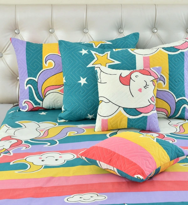 Green King Flat 230 TC Floral Bedsheet (Pack of 1, Multicolour (1 Bedsheet + 2 Pillow Covers + 2 Cushion Cover with filler)