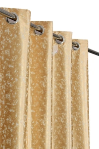 Panipat Textile Hub Polyester Eyelet Cream Designer Print curtains Pack of 2
