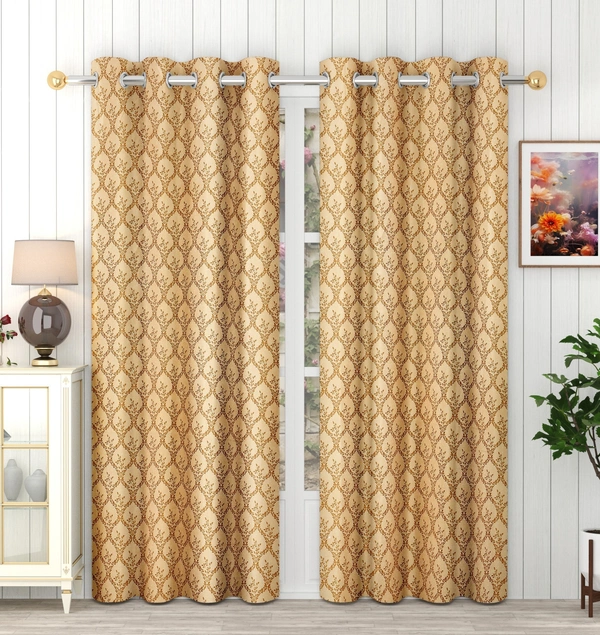 Panipat Textile Hub Polyester Eyelet Gold Designer Print curtains Pack of 2