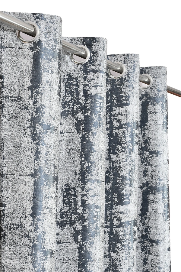 Panipat Textile Hub Polyester Eyelet Gray Designer Print curtains Pack of 2