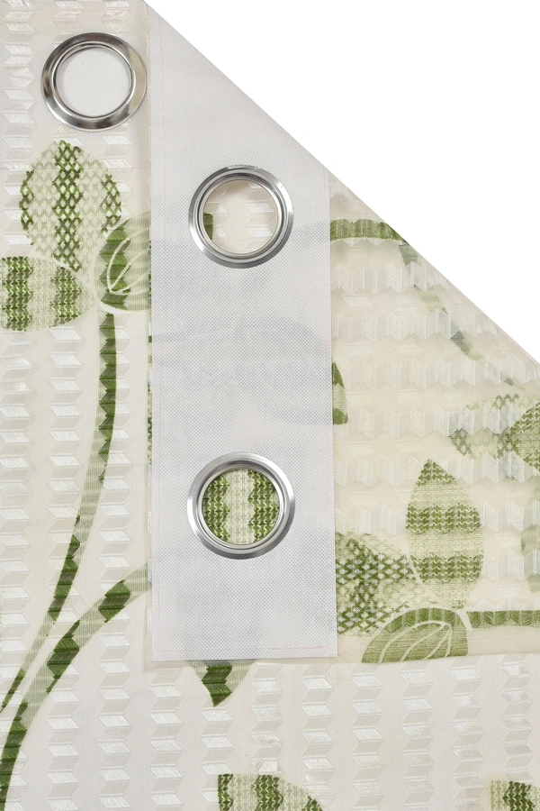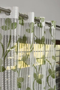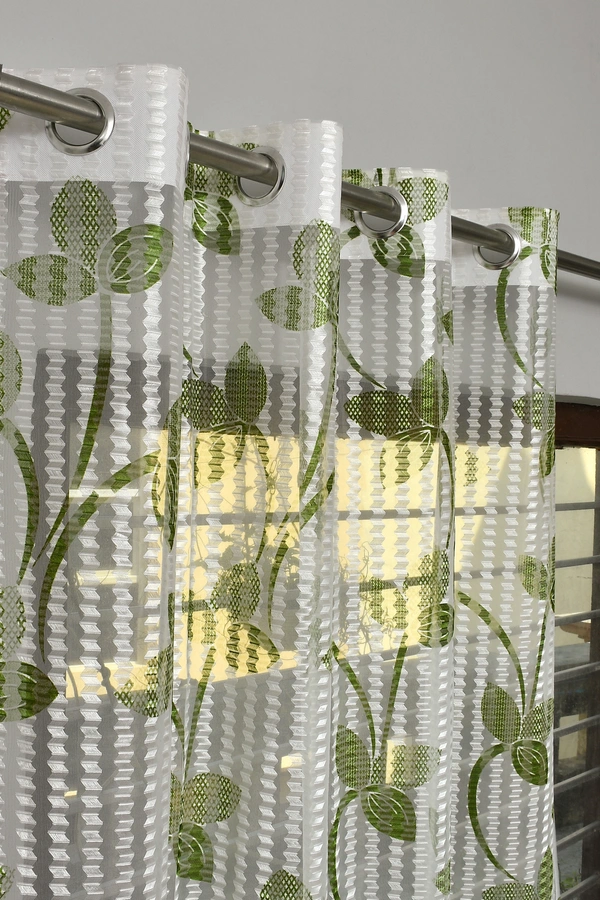 Panipat Textile Hub Semi Transparent Net Curtains (florel Design ,Green) Pack of 2