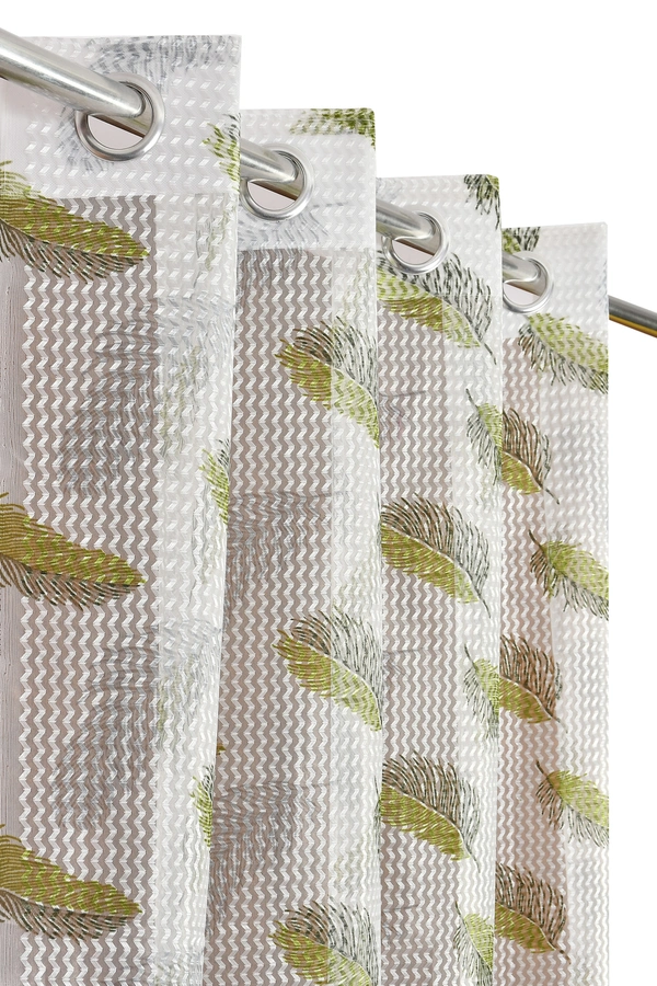 Panipat Textile Hub Semi Transparent Net Curtains (florel Design , Green) Pack of 2