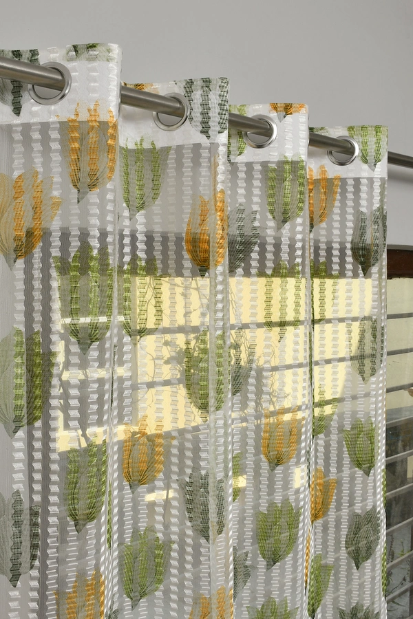 Panipat Textile Hub Semi Transparent Net Curtains (florel Design ,Green) Pack of 2