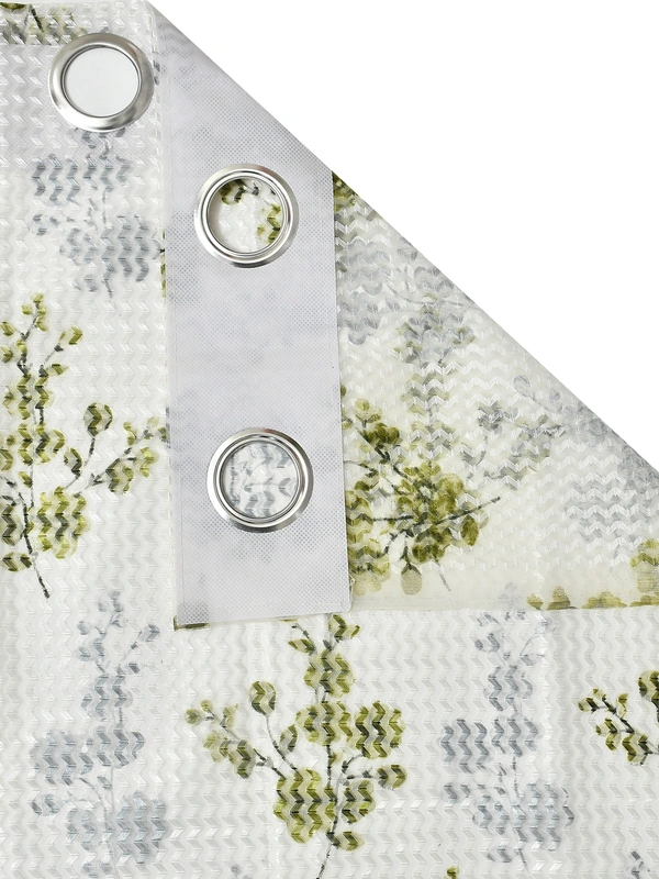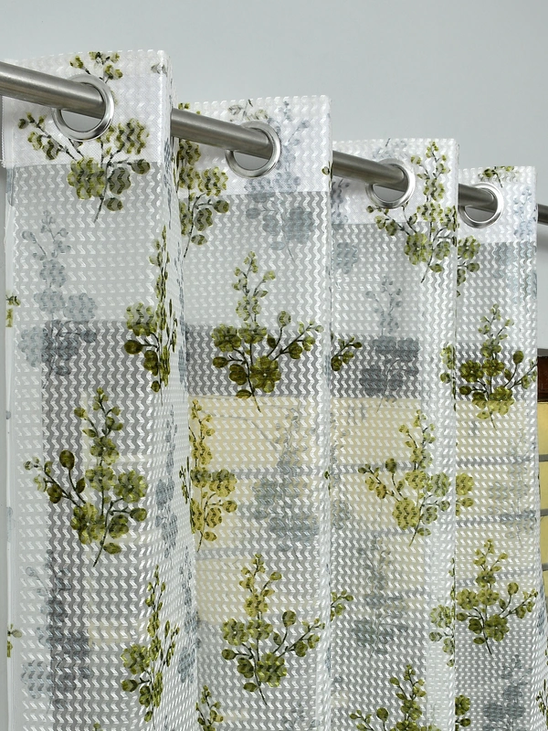 Panipat Textile Hub Semi Transparent Net Curtains (florel Design ,Green) Pack of 2