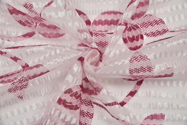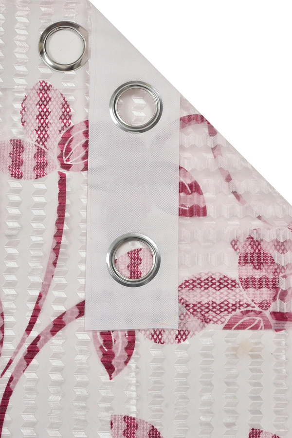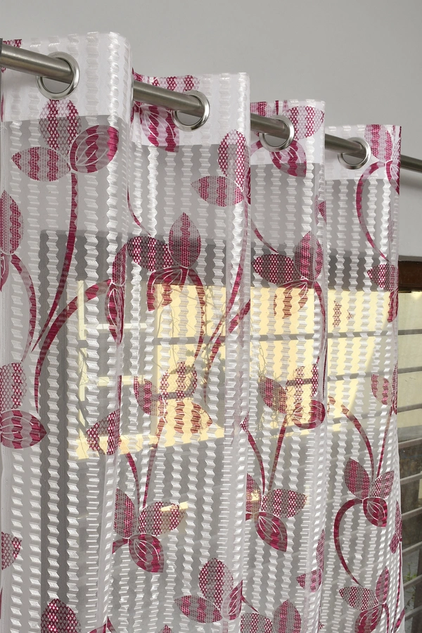 Panipat Textile Hub Semi Transparent Net Curtains (florel Design ,Wine) Pack of 2