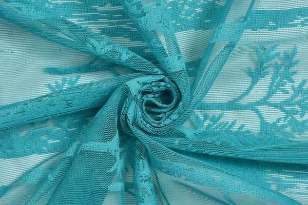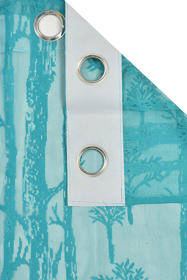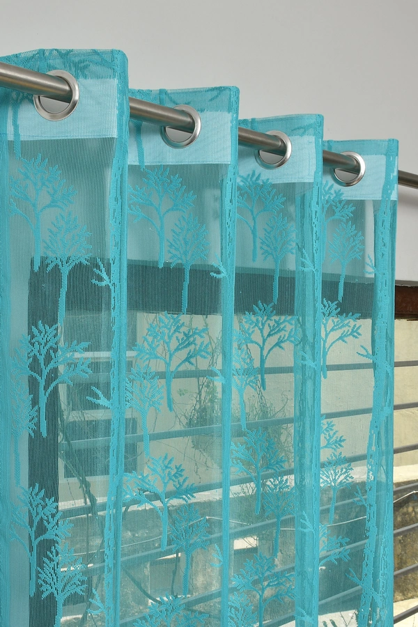 Tanishka fab Semi Transparent Net Curtains (florel Design ,Aqua) Pack of 2
