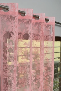 Tanishka fab Semi Transparent Net Curtains (florel Design , Baby Pink) Pack of 2
