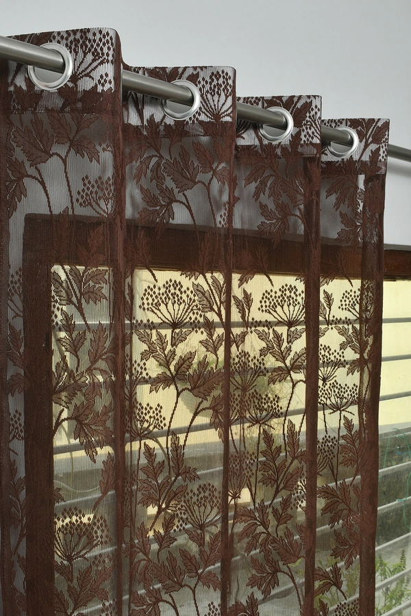 Tanishka fab Semi Transparent Net Curtains (florel Design ,Brown) Pack of 2