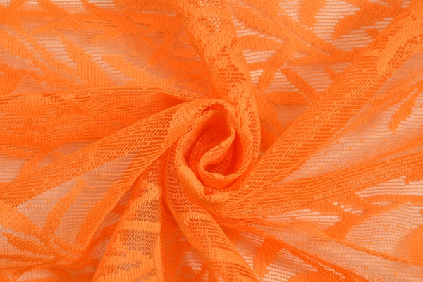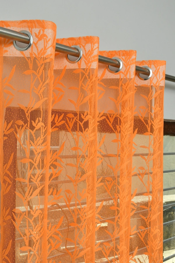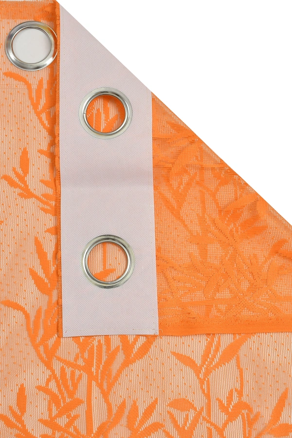Tanishka fab Semi Transparent Net Curtains (florel Design ,Orange) Pack of 2
