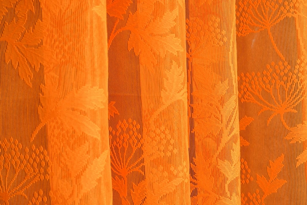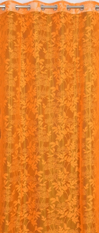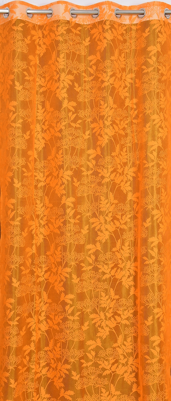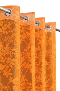 Tanishka fab Semi Transparent Net Curtains (florel Design ,Orange) Pack of 2